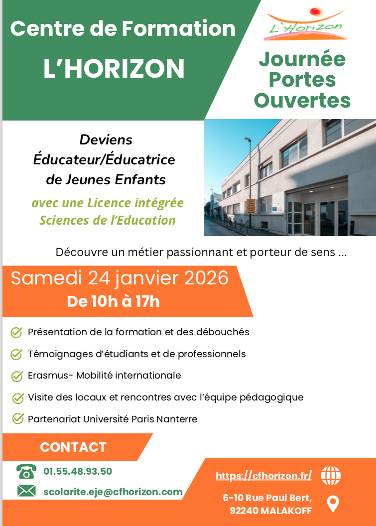 La réforme fait passer le diplôme d’EJE à niveau II (Grade licence) délivré par le Ministère de la Jeunesse et des Sports et de la Cohésion sociale et s’accompagne pour l’Horizon d’un titre Licence de l’Université de Paris Nanterre en Sciences de l’Education.